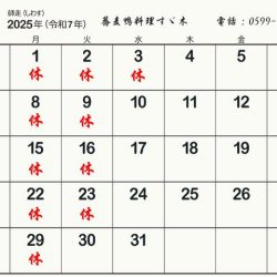 2025年12月の営業日と休業日のお知らせ 投稿日: 2025年10月31日2025年10月31日 投稿者: wpmaster いつも蕎麦鴨料理すゞ木をご利用いただきありがとうございます。 年末に向けてのご予定にお役立ていただけますよう、12月の営業日・休業日をカレンダーにてご案内しております。 ご来店の際は営業日をご確認のうえ、お気をつけてお越[…]