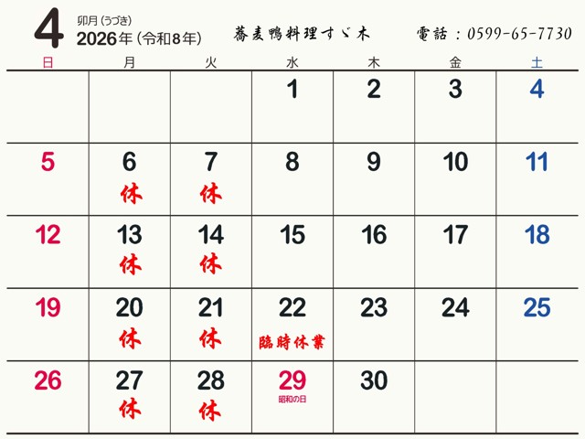 春の訪れを感じる季節となりました。誠に勝手ながら 4月22日は都合により臨時休業いたします。お客様にはご不便をおかけいたしますが、最新の営業日につきましてはこちらの改訂カレンダーをご確認ください。よろしくお願いいたします。